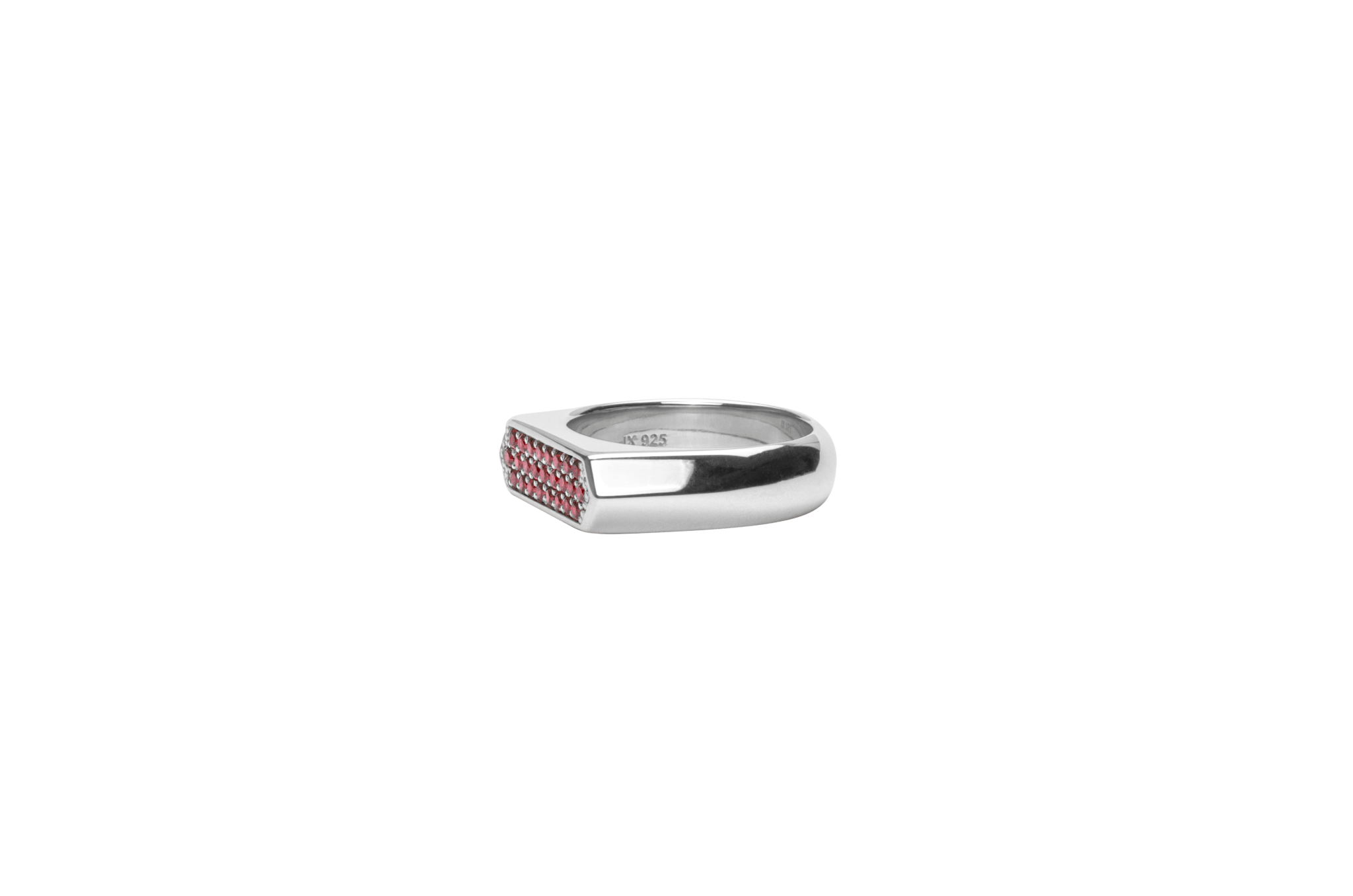 Knivskarpe linjer, udtryksfuld og iøjnefaldende, med røde sten.• Smykket er fremstillet i 100% recycled 925 sterling sølv.• Ringens topplade måler 5 x 17 mm.• Alle vores smykker er stemplet med 925 IX indvendigt, som er vores faglige navnestempel, registreret af dansk ædelmetalkontrol.