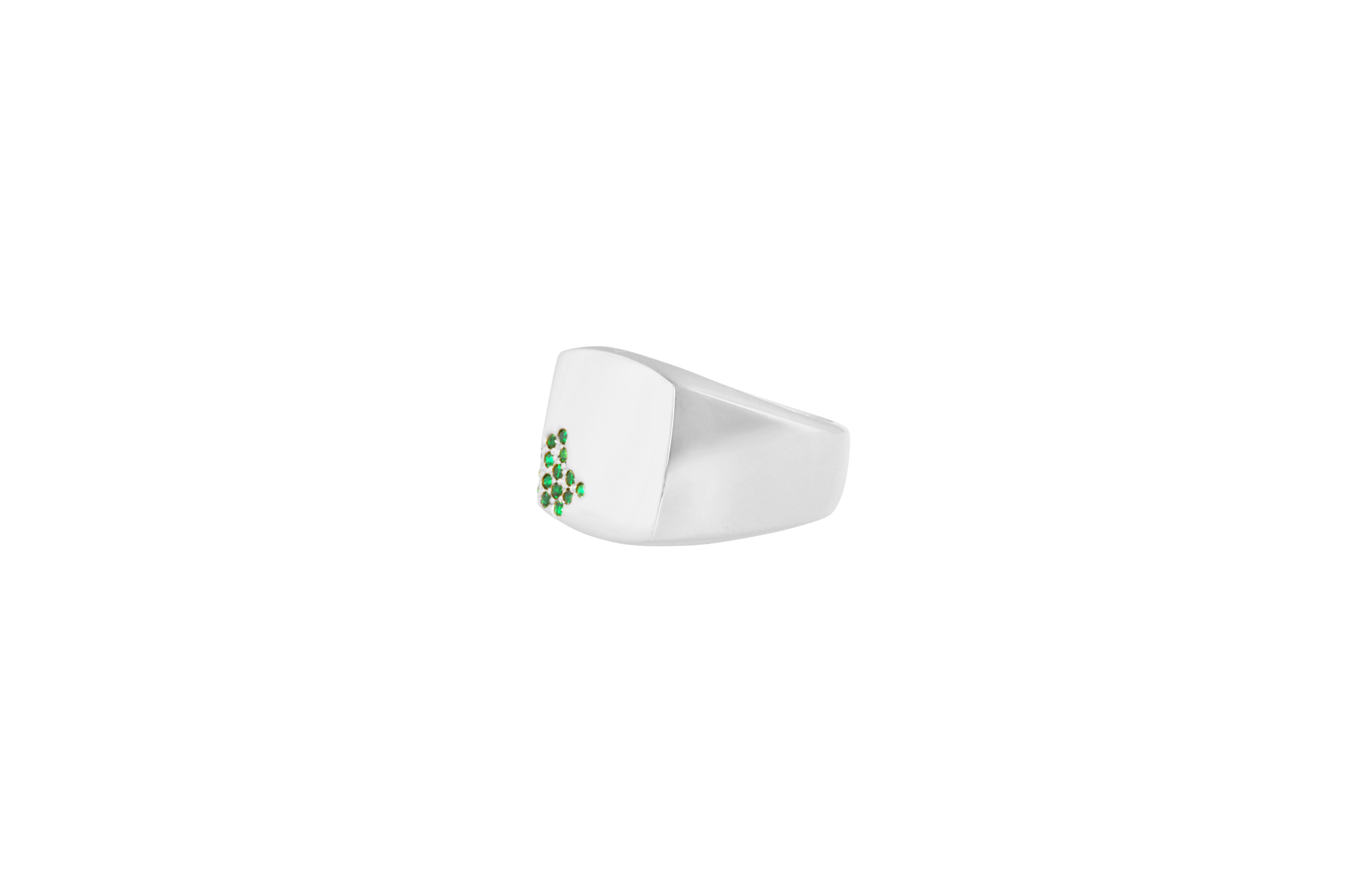 En statement-ring designet med smukke grønne zirconia-sten. • Top-pladen på ringen måler 13 x 13 mm.