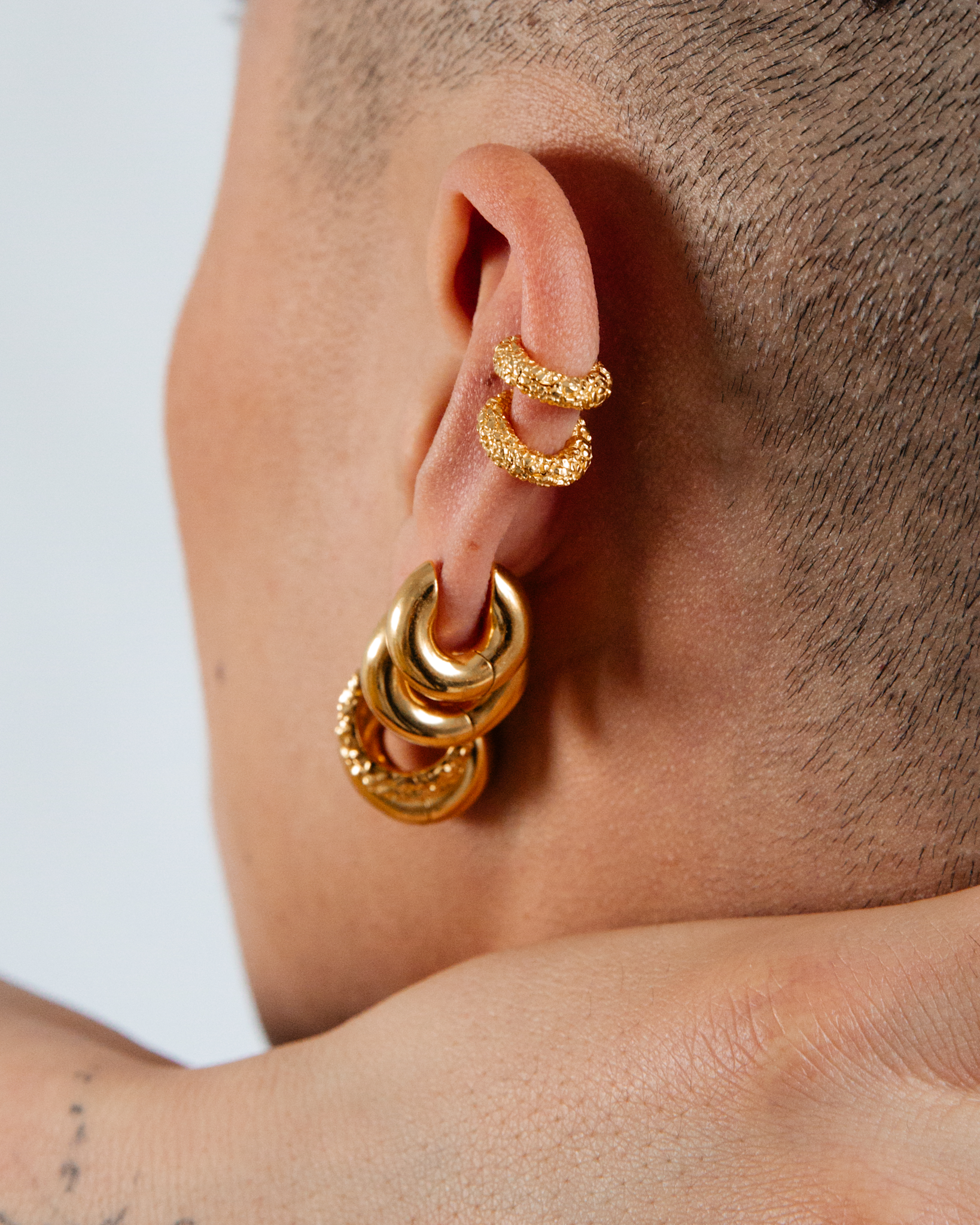 The Zoe earring transforms timeless hoop earrings into something unique with our new crunchy surface. These earrings combine classic elegance with a modern touch. Add the Zoe Earring to your jewellery collection for a stylish and eye-catching look.Zoe earrings are unisex, designed to suit both men and women, and are available in both gold plated and silver.