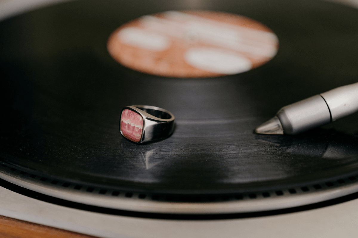 IX Cushion Signet Ring Rhodocrosite Silver