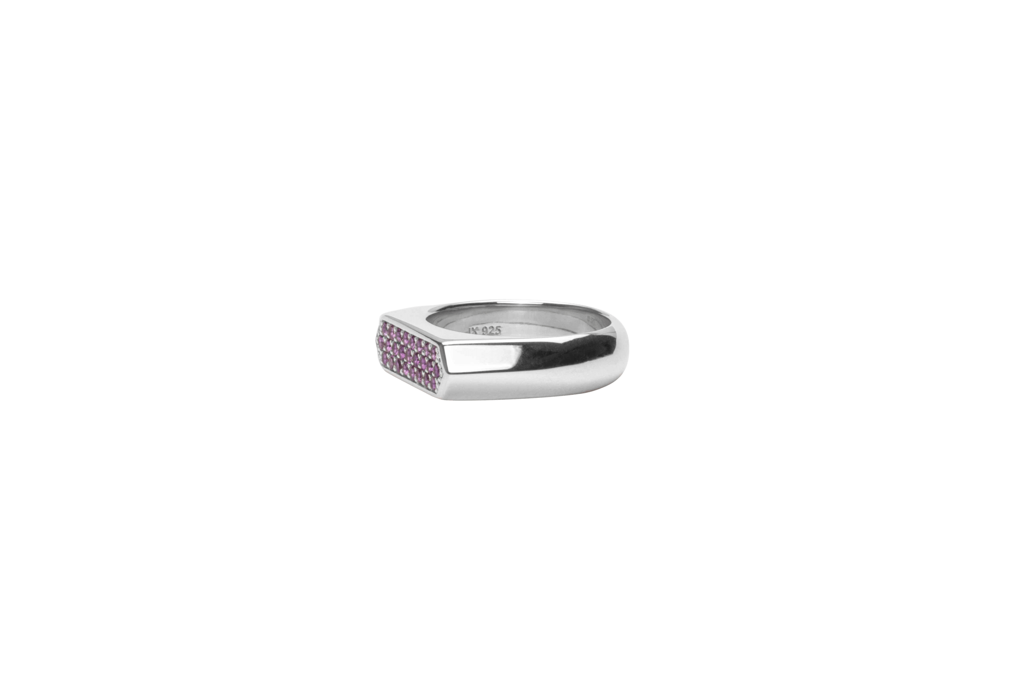 Knivskarpe linjer, udtryksfuld og iøjnefaldende, med lilla sten.• Smykket er fremstillet i 100% recycled 925 sterling sølv.• Ringens topplade måler 5 x 17 mm.• Alle vores smykker er stemplet med 925 IX indvendigt, som er vores faglige navnestempel, registreret af dansk ædelmetalkontrol.